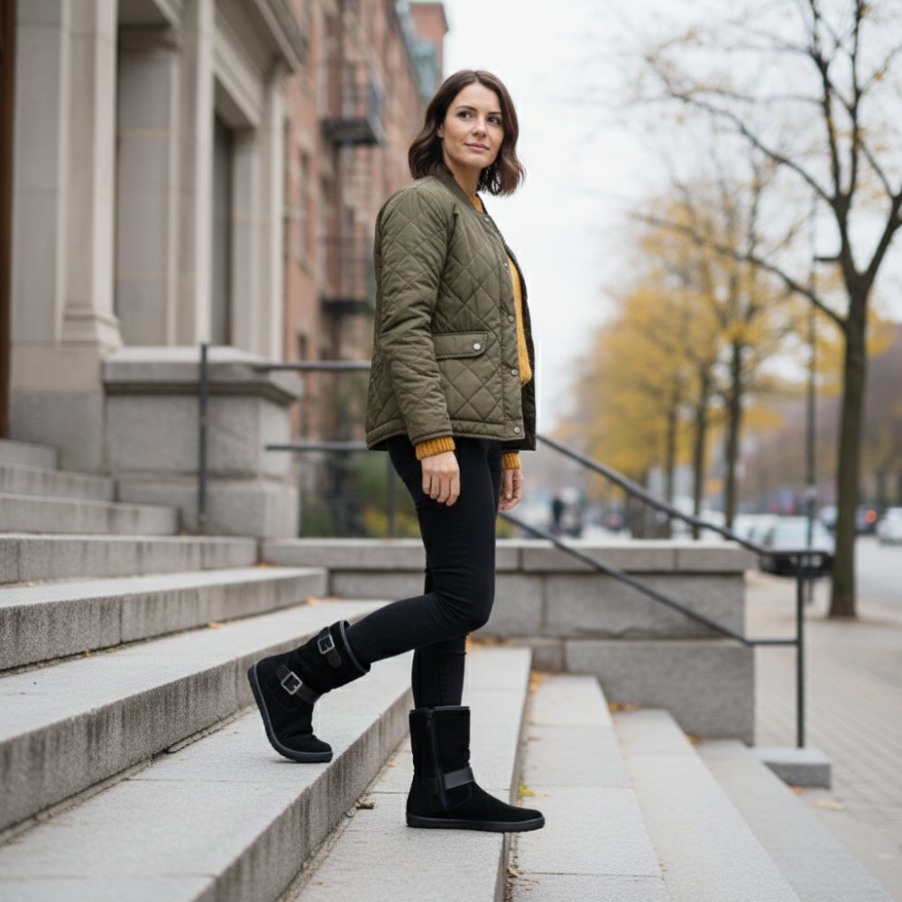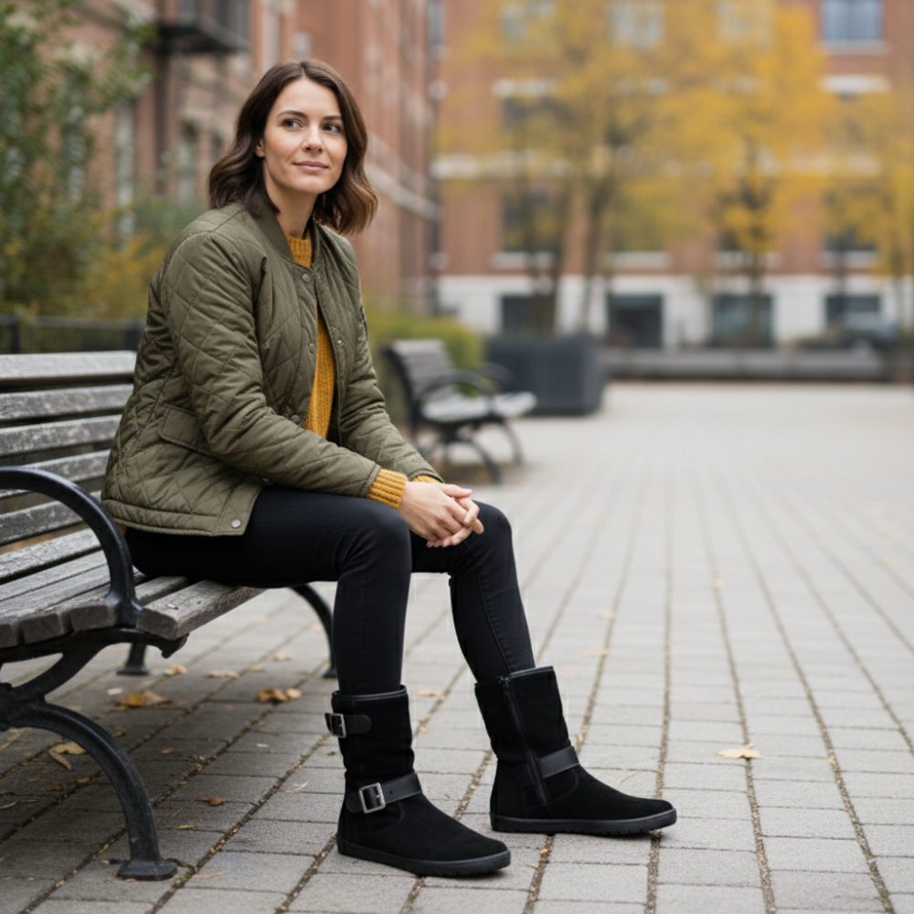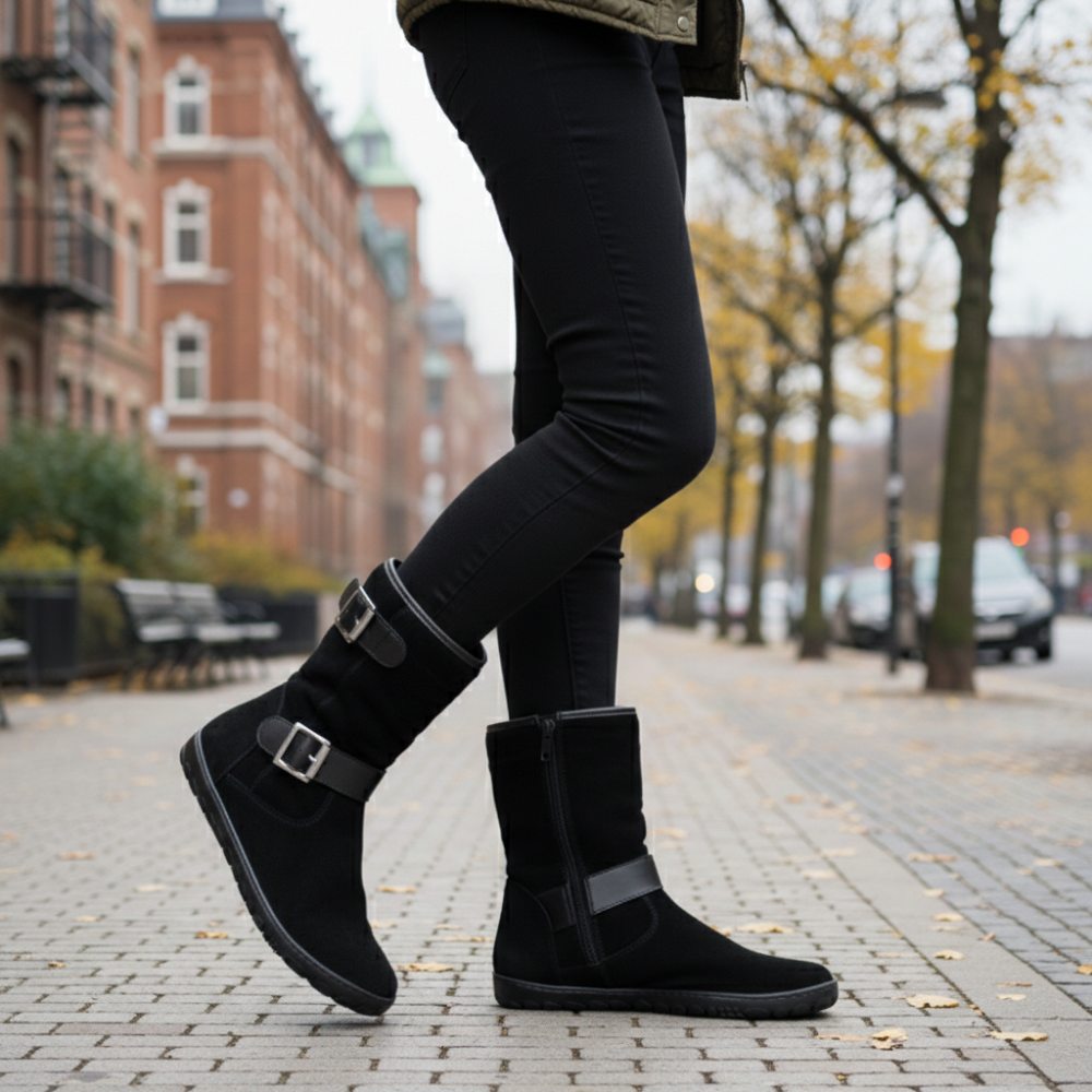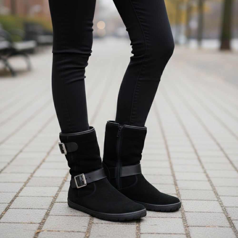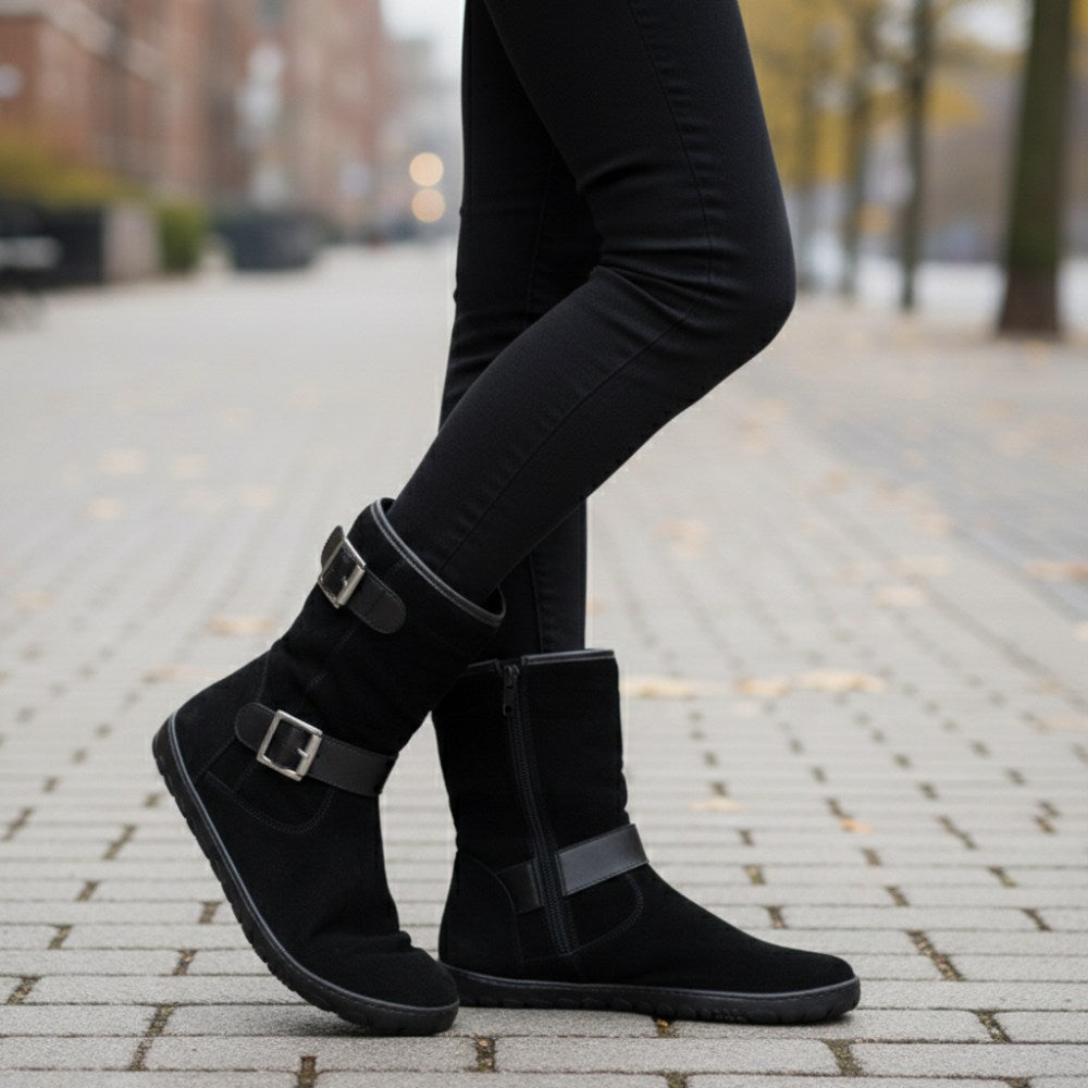 Du liebst es, sobald der Sommer vorbei ist, in Deine Boots zu schlüpfen? Dann ist ANIQ genau richtig! Dieser Barfußschuh überzeugt mit weichem, atmungsaktivem Veloursleder von außen und einem feinen Futter aus Glattleder von innen. Somit kannst Du ANIQ problemlos an wärmeren Herbst- und Frühlingstagen tragen oder mit Wollsocken sogar im Winter.
