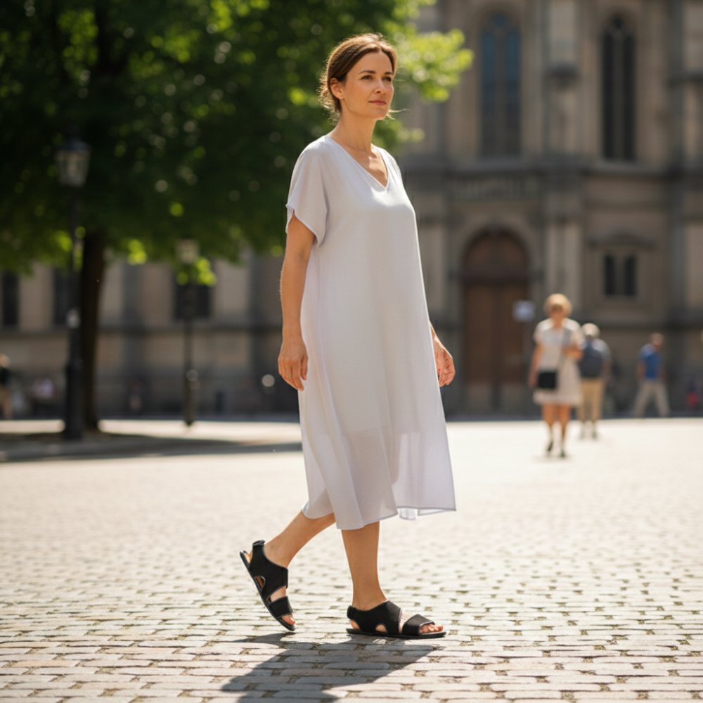 Dank der Barfußtechnologie genießt Du mit CISQA Black ein natürliches Laufgefühl, das Deine Füße stärkt und Deine Haltung verbessert, ohne dabei auf modischen Ausdruck zu verzichten. Diese Sandalen sind so konzipiert, dass sie sich Deinem Fuß perfekt anpassen und gleichzeitig ein elegantes, minimalistisches Design bieten, das zu jedem Anlass passt.
