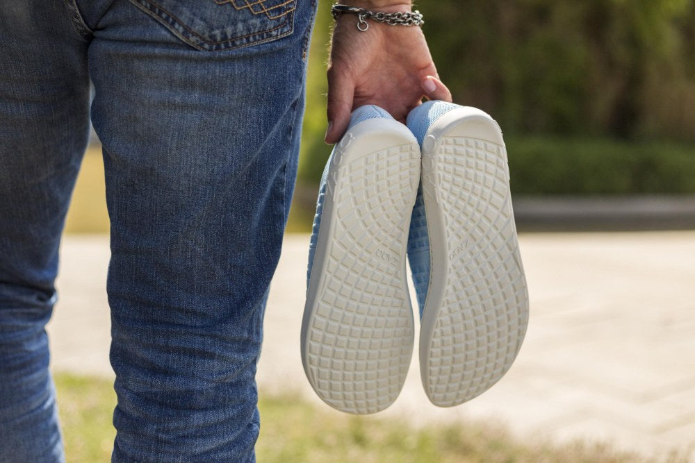 Für Stabilität und Robustheit sorgen feinmaschige Stoffe, die dem hellblauen Sneaker ein aufregendes Muster geben. Natürlich wird Dich auch die flexible Barfußsohle aus Kautschuk begeistern. Es ist eine Wohltat, in diesem Sneaker zu spazieren, zu laufen oder Sport zu treiben. Wenn Du diesen Barfußschuh einmal an Deinen Füßen gespürt hast, willst Du keinen anderen mehr. CROQET ist super leicht, super flexibel, super bequem und einfach megaschön.