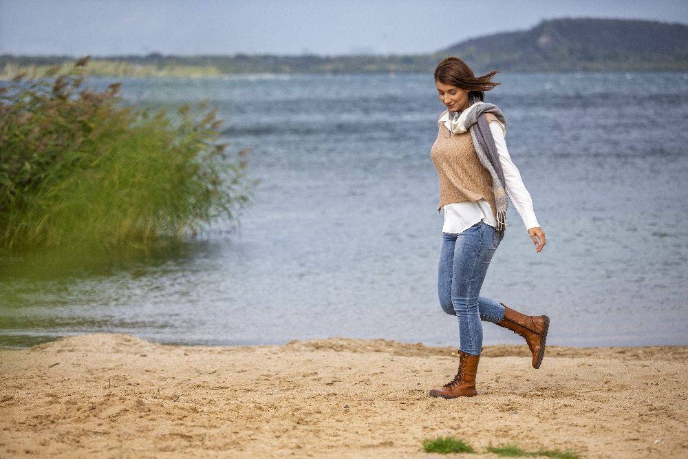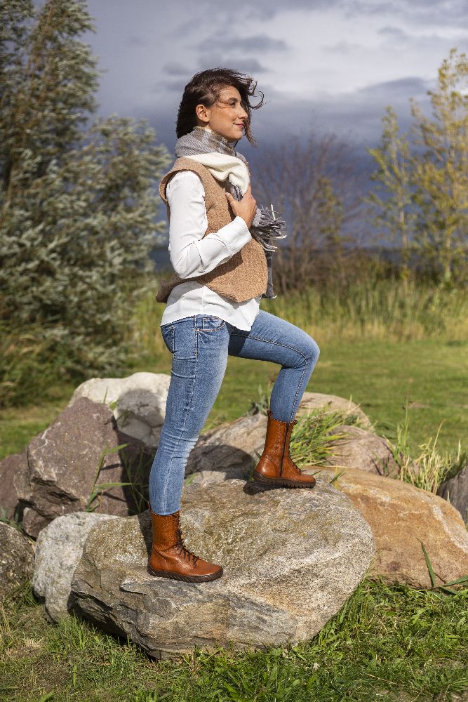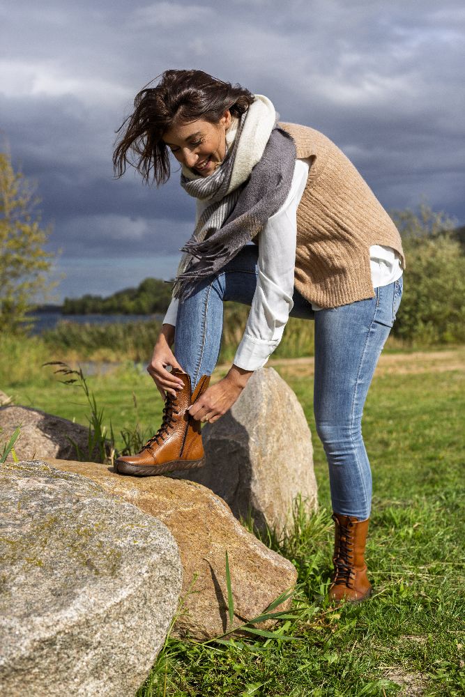 - Kautschuksohle mit Nullabsatz, dadurch Entlastung der Wirbelsäule und Schonung der Gelenke, unterstützt die natürliche Körperhaltung