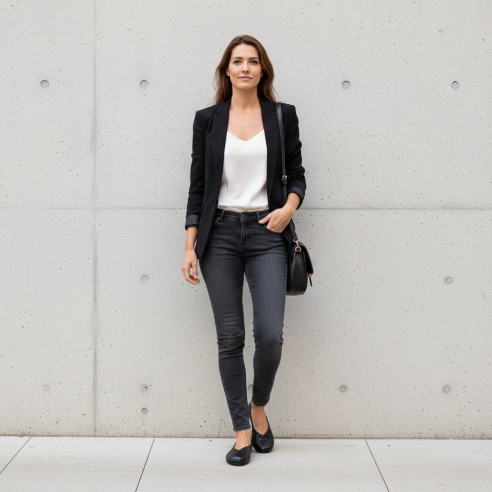 MAIQA Black passt zu nahezu jedem Outfit. Ob Du einen professionellen Look fürs Büro, ein lässiges Outfit für den Alltag oder einen eleganten Stil für den Abend suchst, dieser Ballerinaschuh fügt sich nahtlos in Deine Garderobe ein. Trage ihn zu einer schmal geschnittenen Hose und einem Blazer für ein schickes Business-Ensemble oder kombiniere ihn mit einem fließenden Sommerkleid für einen entspannten, aber stilvollen Look. Auch zu Jeans und einem lockeren Shirt bringt MAIQA Black eine edle Note.