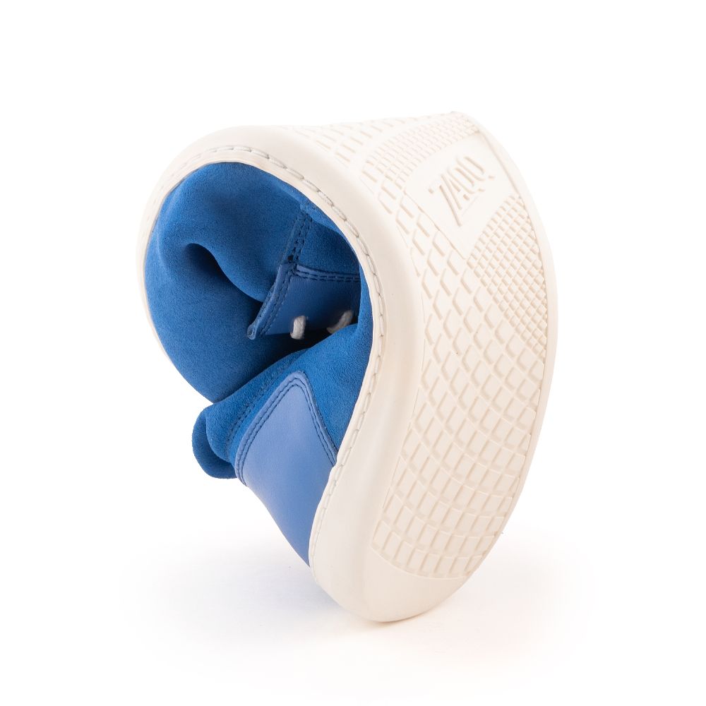 Das besonders fein geschliffene Veloursleder in Azurblau verleiht diesem Sneaker seinen leichten und eleganten Look. Für das Schnürsenkelschloss haben wir hochwertiges Glattleder verwendet, um dem einheitlich blauen Barfußschuh einen kleinen Kontrast zu geben.