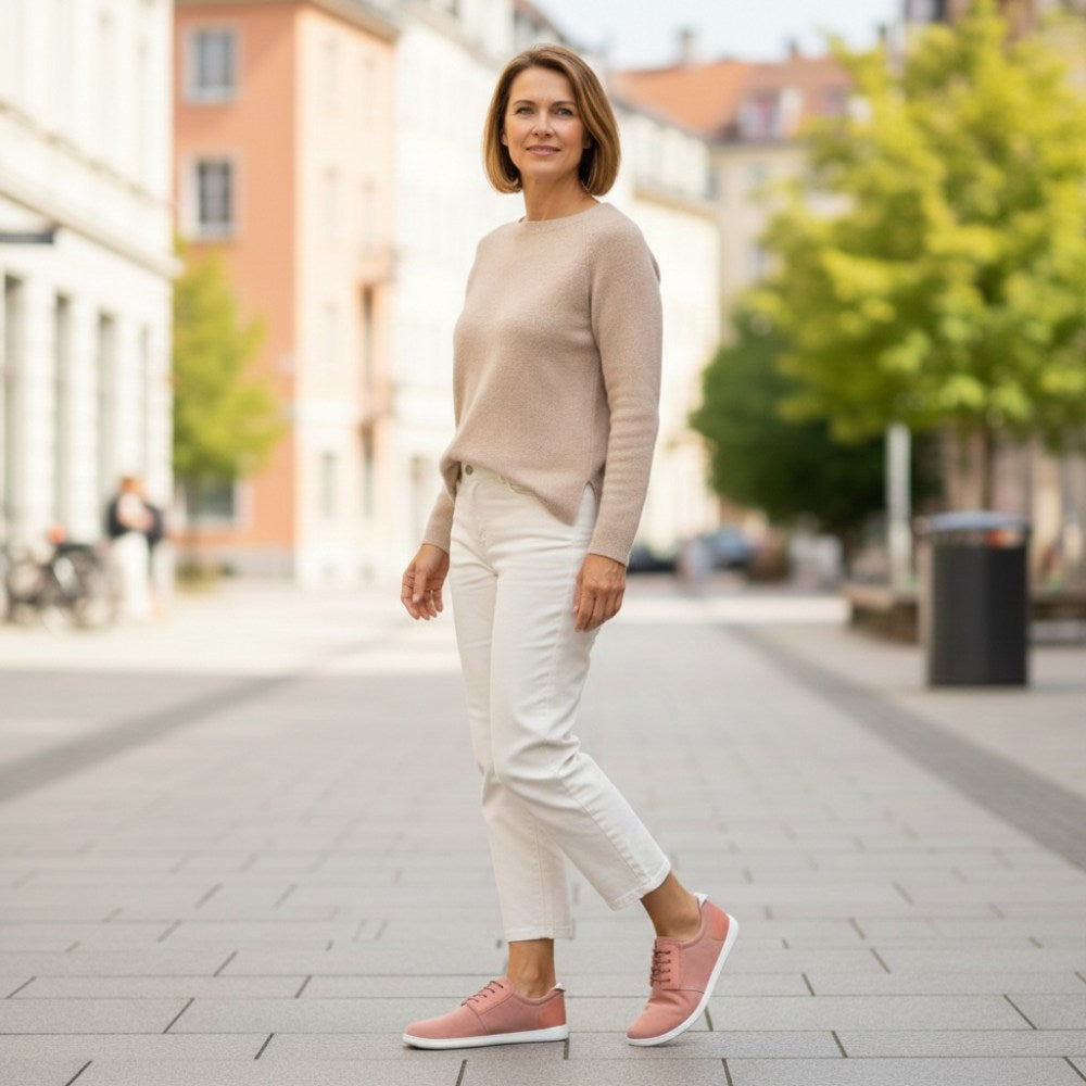 Ein schlichter Sneaker, in wunderschönem und elegantem Veloursleder in Rosa - unser PIQUANT Rosa ist ein absoluter Hingucker und kann sich in Deiner Freizeit, aber durchaus auch im Büro sehen lassen!