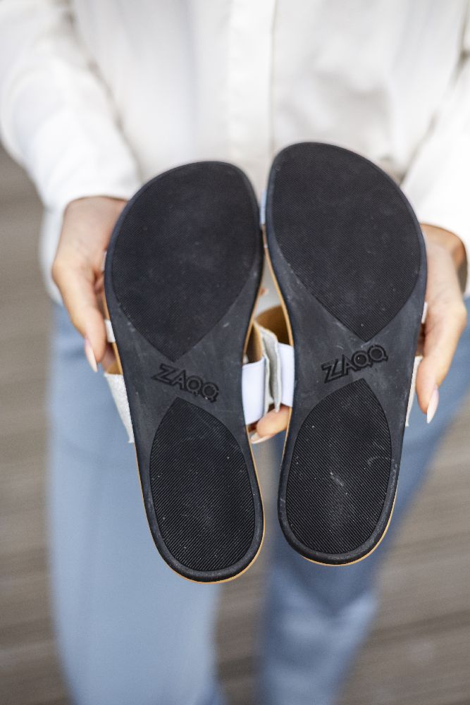 Aus diesen hochwertigen Materialien besteht Deine neue Barfußsandale ZAQQ QATE Silver White :