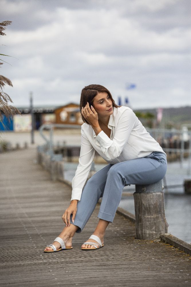 Die QATE Silver White vereinen Eleganz und das unbeschwerte Gefühl des Barfußlaufens in einer stilvollen Sandale. Ihr einzigartiges Design mit zwei zarten silbernen Riemen vorn und einem breiteren weißen Riemen über dem Spann bietet nicht nur einen Blickfang, sondern garantiert auch einen sicheren und bequemen Sitz. Das Zusammenspiel von Silber und Weiß verleiht diesen Sandalen eine frische und zugleich edle Ausstrahlung, die perfekt zu verschiedenen Anlässen passt.