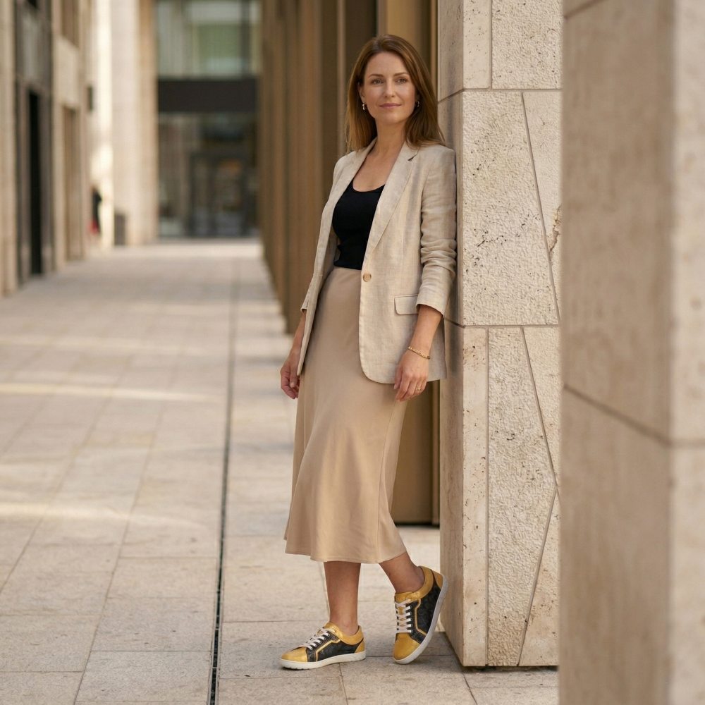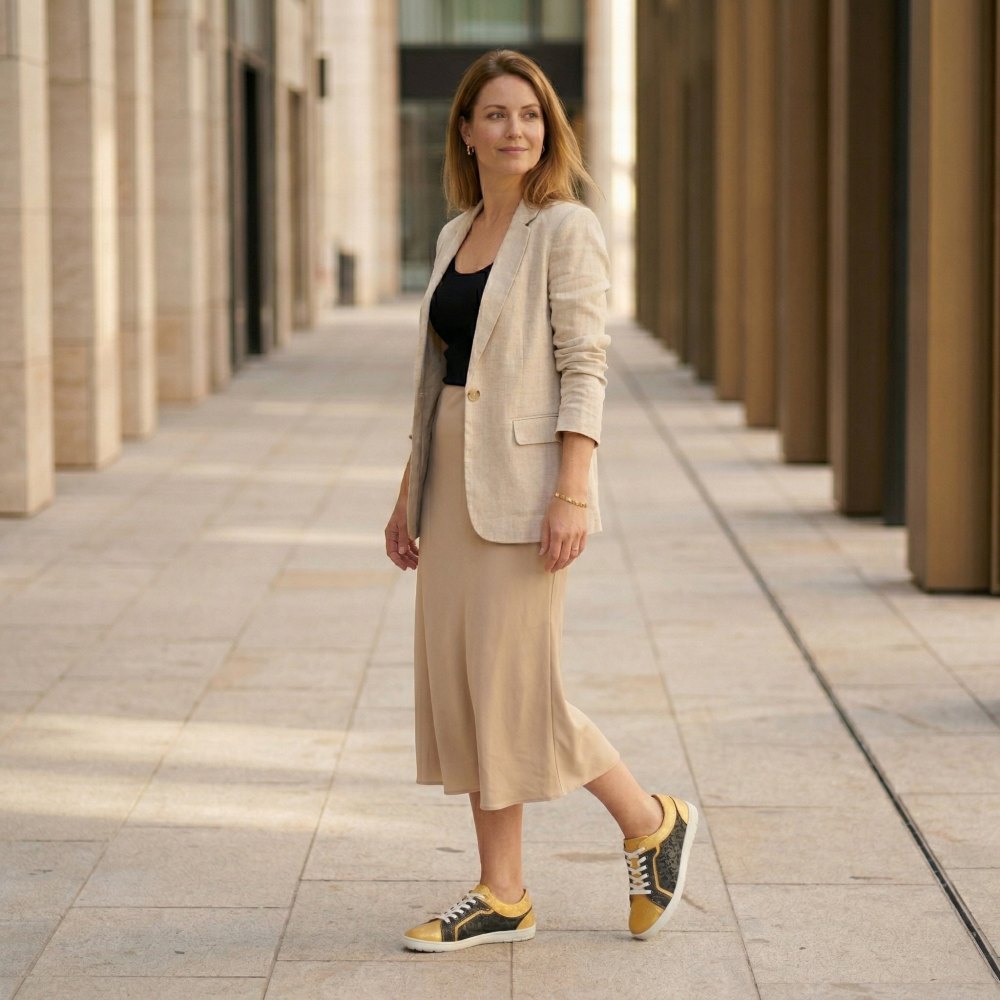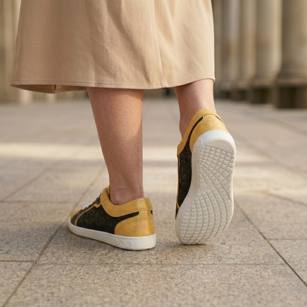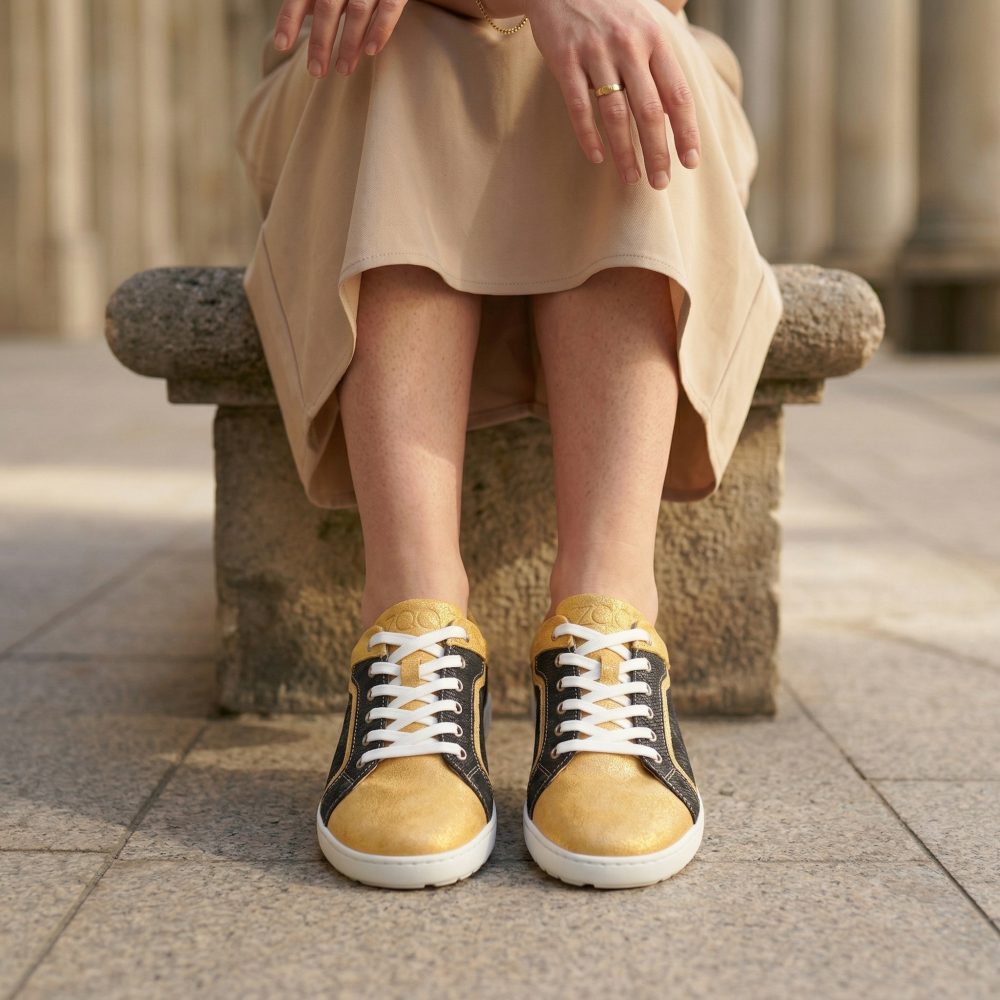 QODY Gold ist Dein neuer glamouröser Sneaker, der besonders feminin ist. Mit diesem Barfußschuh ziehst Du garantiert viele interessierte Blicke auf Dich.