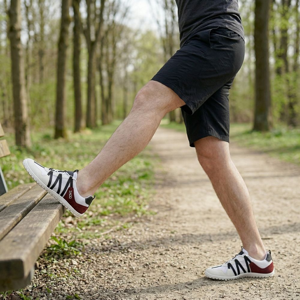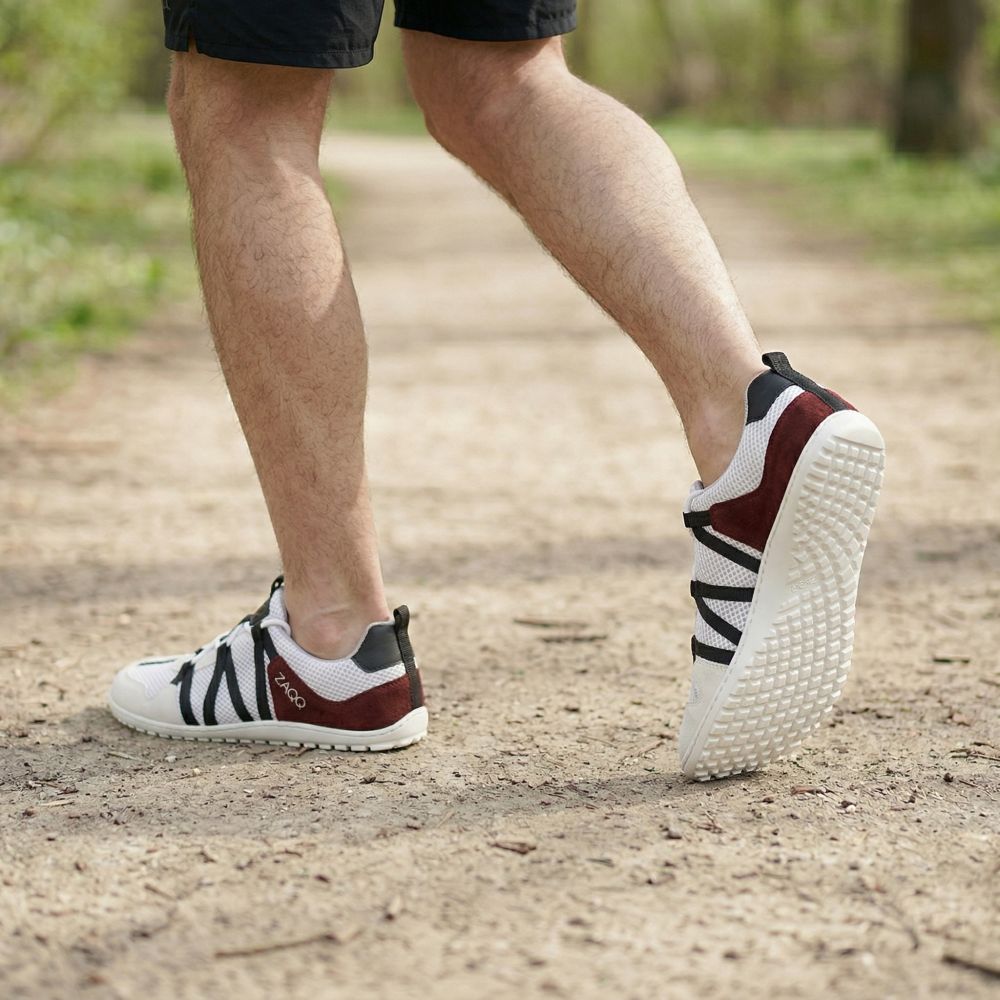 Stadtbummel oder Joggingrunde? Mit RIQ White Red geht beides – ein Barfußschuh, der mit seiner hohen Atmungsaktivität perfekt für jede Sportart ist, der aber gleichzeitig als White-Sneaker mit dem gewissen Extra auch eleganter getragen werden kann.